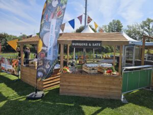 heerlijke broodjes hamburger en porties kipsate mogen verkopen, top weer, reuze gezellig.